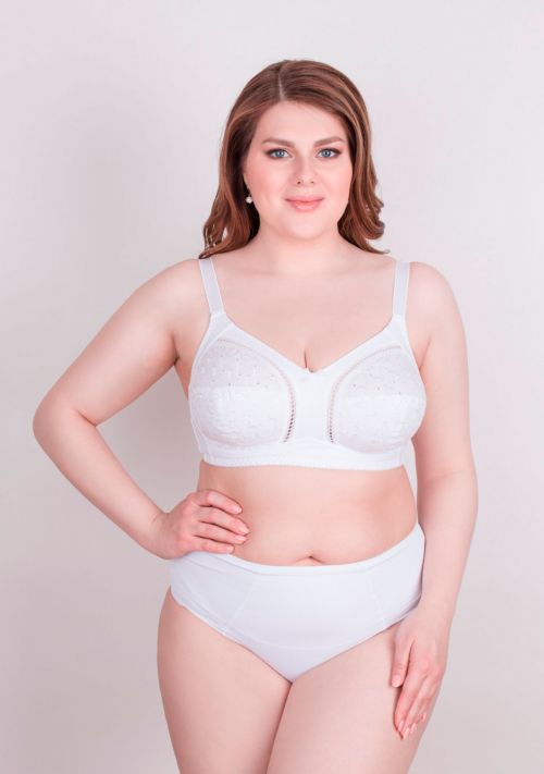 Бюстгальтер Milavitsa арт. 118180 Мягкая чашка без каркасов, упругие пластины в боковых деталях стана. Стан из эластичного трикотажного полотна. Чашки из эластичного полотна, трикотажного полотна, ткань х/б + вышитая ткань. Отделка - шитьё на тканном хлопковом полотне и бантик.
