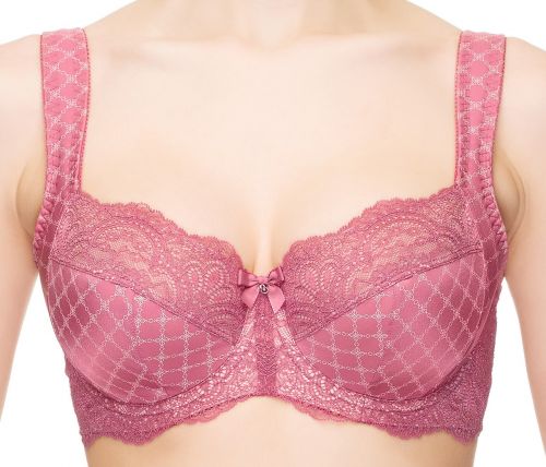 Бюстгальтер Lauma Lingerie арт.35J21 с мягкими чашками на каркасах и стане. В основе чашки конструкция из трёх деталей с тройным прямым диагональным членением и боковой корректирующей деталью чашки. Нижние детали чашки из набивного полотна на подкладке из стабильного, ламинированного хлопка. Боковая корректирующая деталь чашки из набивного полотна на дубляже, переходящая в комфортную, расширенную бретель. Верхняя деталь чашки из эластичного кружева в размерах DEFGHJ продублирована эластичным сетчатым полотном. Cтан из эластичного кружева, в размерах 85-100 ABC и DEFGHJ продублирован эластичным сетчатым полотном. Бюстгальтер дополнен бантиком из атласной ленточки с подвеской.