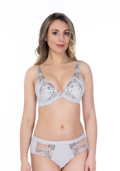 Бюстгальтер женский_Lauma Lingerie арт.37K35 “пуш-ап” на каркасах и стане с плотными формованными чашками. Чашки из вышитого кружева в форме вытянутого треугольника, образовывая красивое V-образное декольте. В нижней части на чашку наложена небольшая деталь из вышитого кружева. Боковые детали стана из эластичного полотна. Бюстгальтер дополнен бантиком из атласной ленточки с подвеской, маленькие бантики на местах соединения чашек с бретелями.