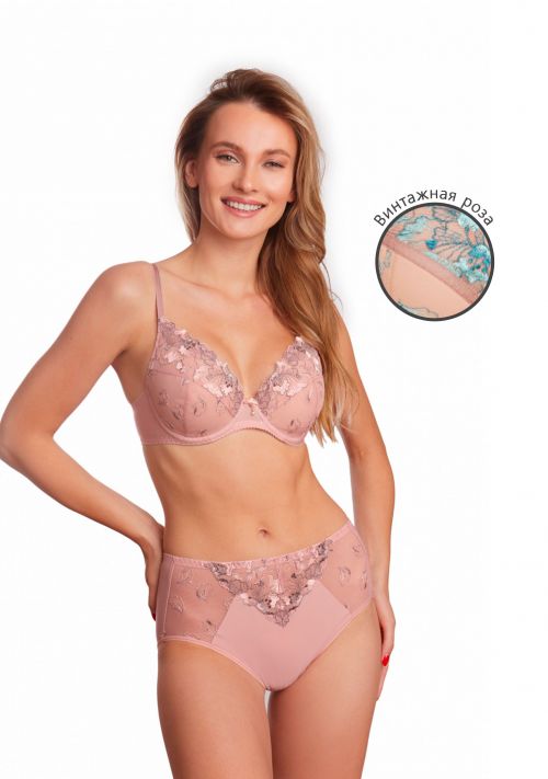 Бюстгальтер Milavitsa арт. 320489 Ароматный шлейф – элегантная серия для большой размерно-полнотной группы выполнена с использованием неэластичной вышивки и неэластичного вышитого полотна. Серия построена на коммерческих конструктивах с проверенной хорошей посадкой, декорирована дизайнерскими приемами. Дизайн вышивки выполнен в виде цветка с ажурной плоской фактурой и благодаря рисунку выглядит нетрадиционно. Акцентом в серии является украшение с жемчужиной и мерцающим кристаллом. В серии предлагаются модели до 100 обхвата.