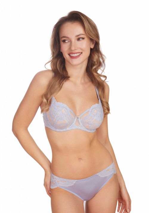 линий и изгибов в моделях еще больше усиливают эффектность, подчеркивая линию каркасов, настроченные декоративные элементы на моделях трусиков и бюстгальтеров, а тактичное и нежное полотно, наряду с пастельными сочетаниями цветов, создаёт ощущение полной и абсолютной гармонии. Новые конструктивные решения для полнот DEFG позволят расширить предложение для эффектных форм. В серии также предложен дублированный пуш-ап.