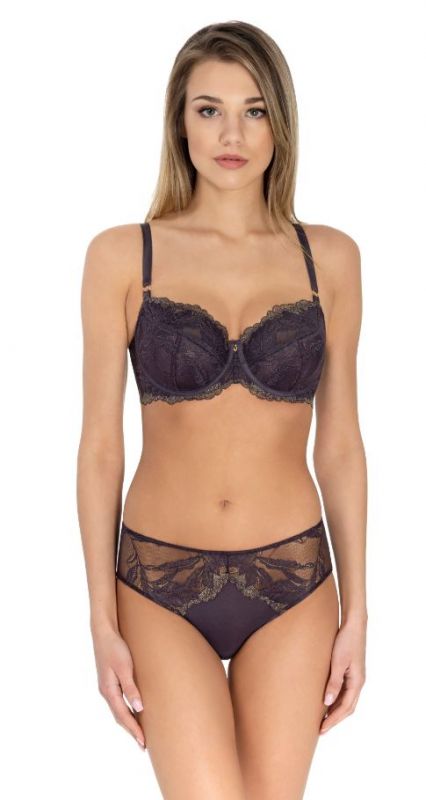 Бюстгальтер женский арт. 08L41 с полудублированными чашками на каркасах и стане из эластичного кружева. Верхняя деталь чашек в размерах DEF продублирована эластичным сетчатым полотном. Боковые детали стана в размерах 85-100 АВС и DEF продублирована эластичным сетчатым полотном. Бюсгальтер дополнен аксессуаром в форме золотой капельки. На местах соединения чашек с бретелями декоративные кольца.